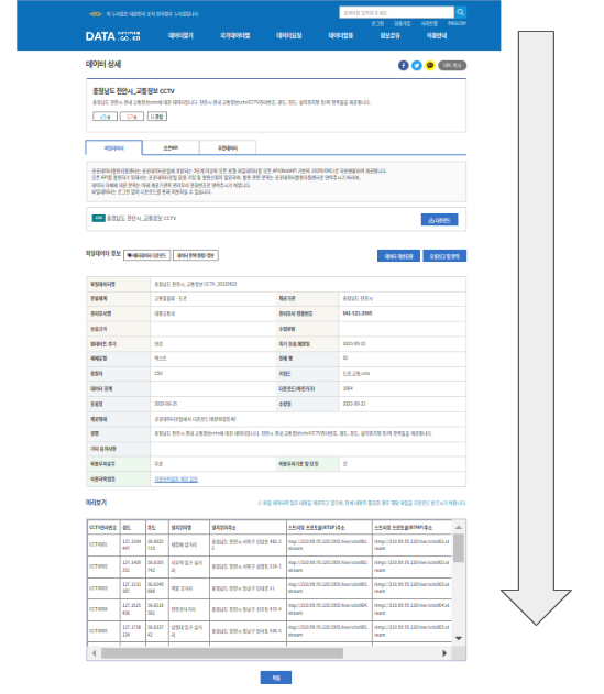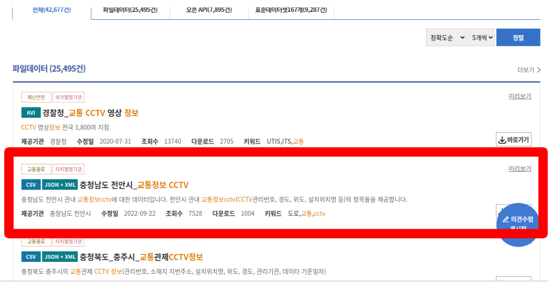 저는 "교통정보 cctv" 를 검색해서 "충청남도 천안시_교통정보 CCTV"를 선택하였습니다.
