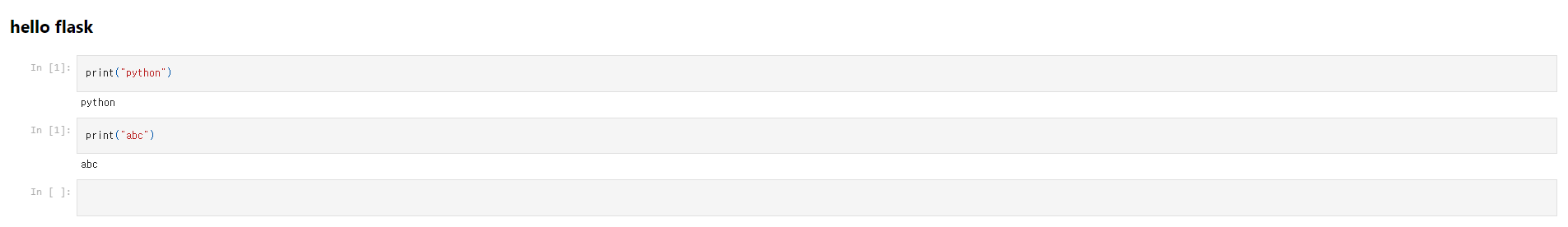 5. python app.py 를 통해 웹서비스를 수행하면 아래와 같이 hello flask 밑에 주피터 노트북 html 파일이 끼워 들어간 것을 확인할 수 있습니다.