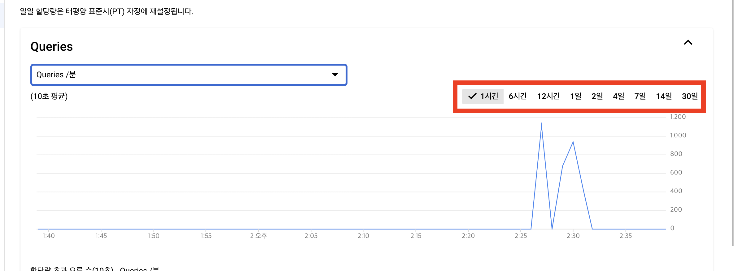5. 위측 상단에 기간을 선택하면서 조건에 맞는 쿼터 사용량 확인 가능
