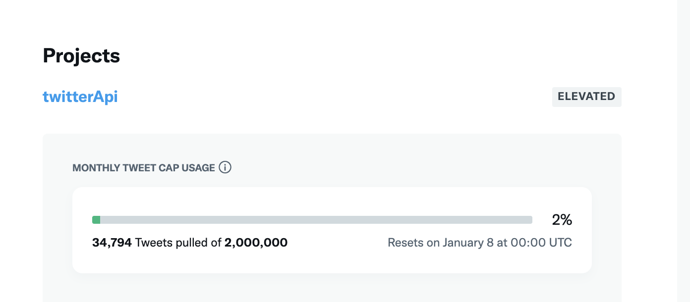 3. "MONTHLY TWEET CAP USAGE " 정보를 통해 확인 가능