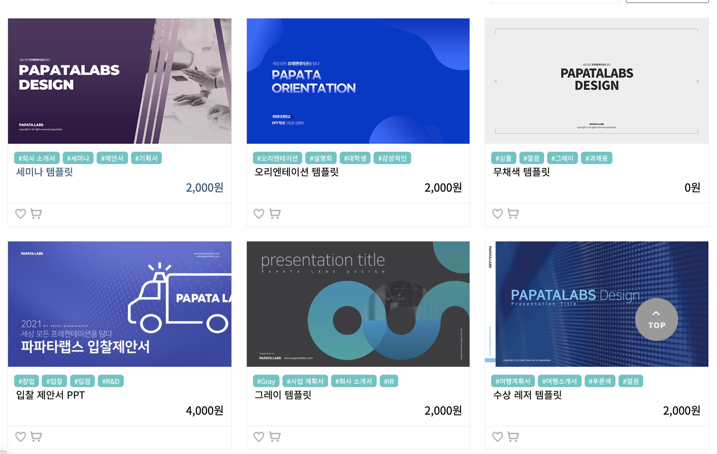 템플릿하나 가격이 대부분 5000원 이하