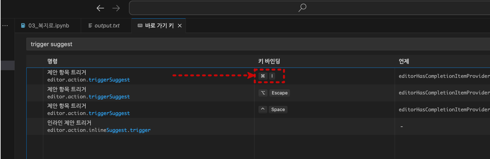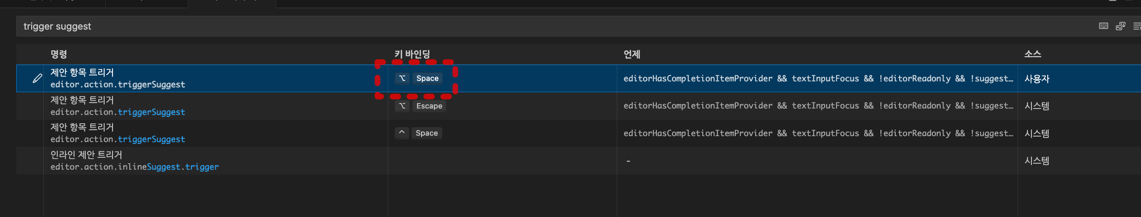 비주얼 스튜디오 코드 자동완성 단축키 설정하기-맥os