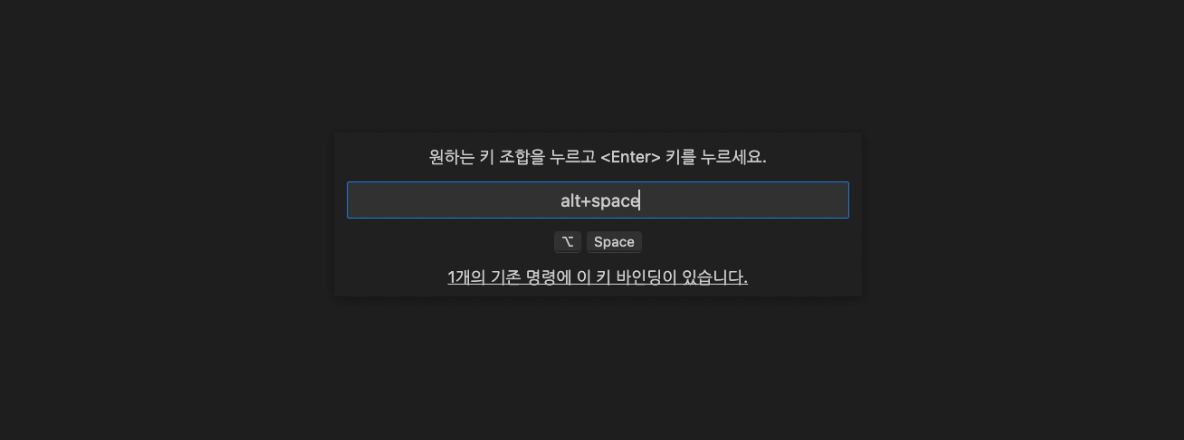 단축키 변경 후 엔터를 하면, 단축키가 변경된 내용을 키 바인딩에 변경된 것을 통해 확인할 수 있습니다.