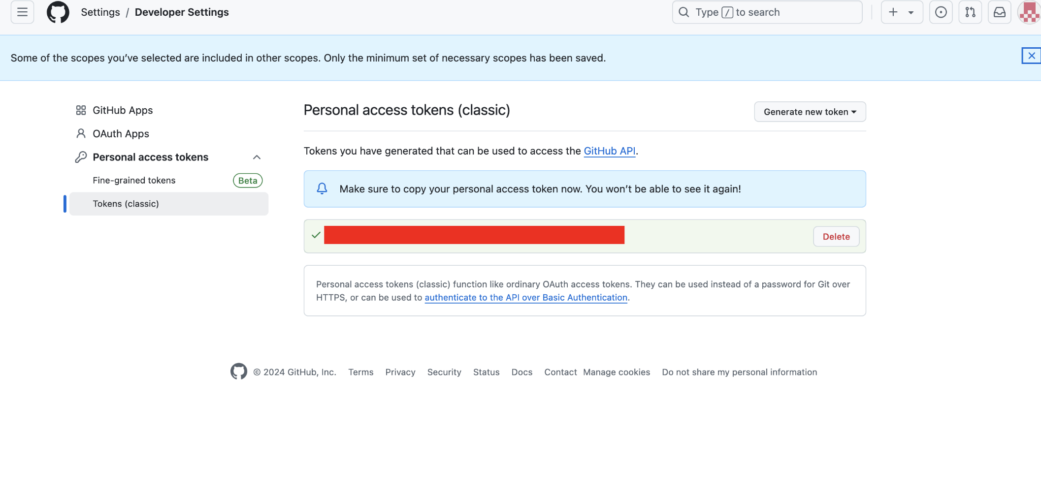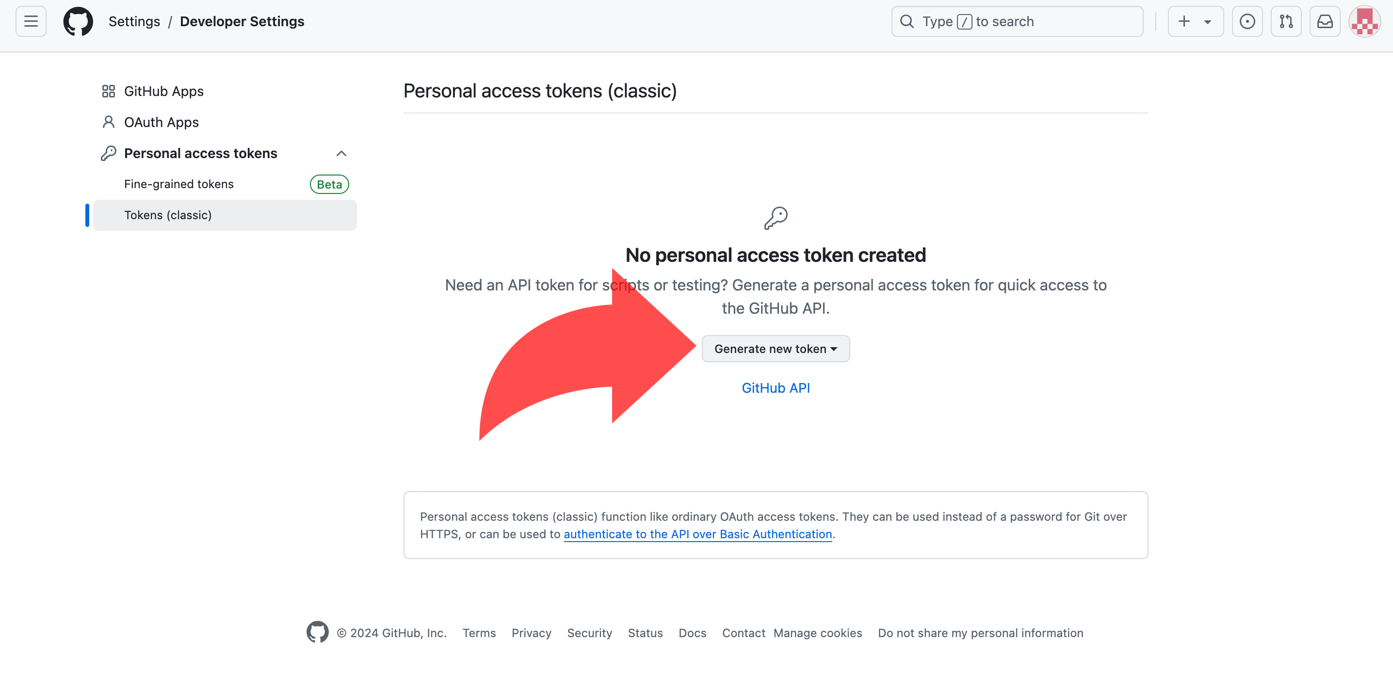 1.7. Generate new token(classic) 클릭