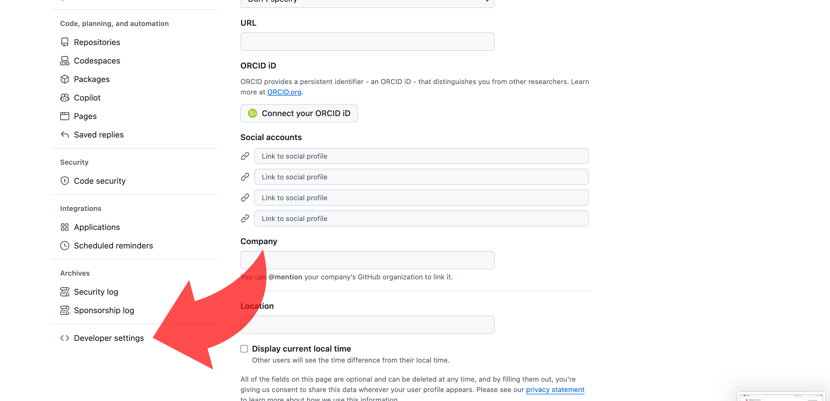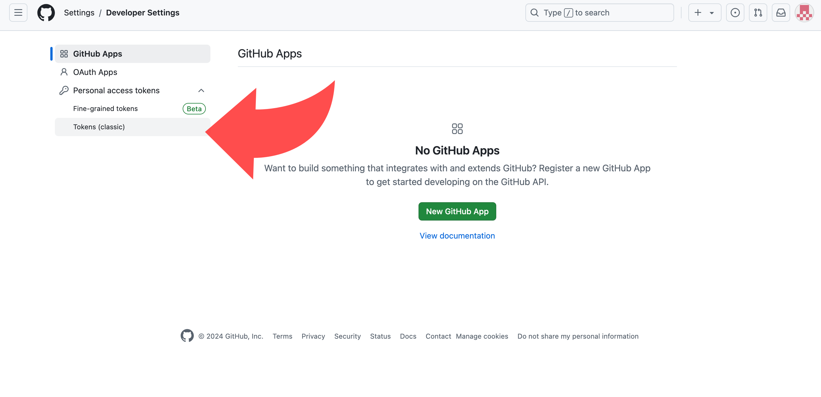 1.3. 왼쪽 네비바에서 scroll down -> Developer settings 클릭