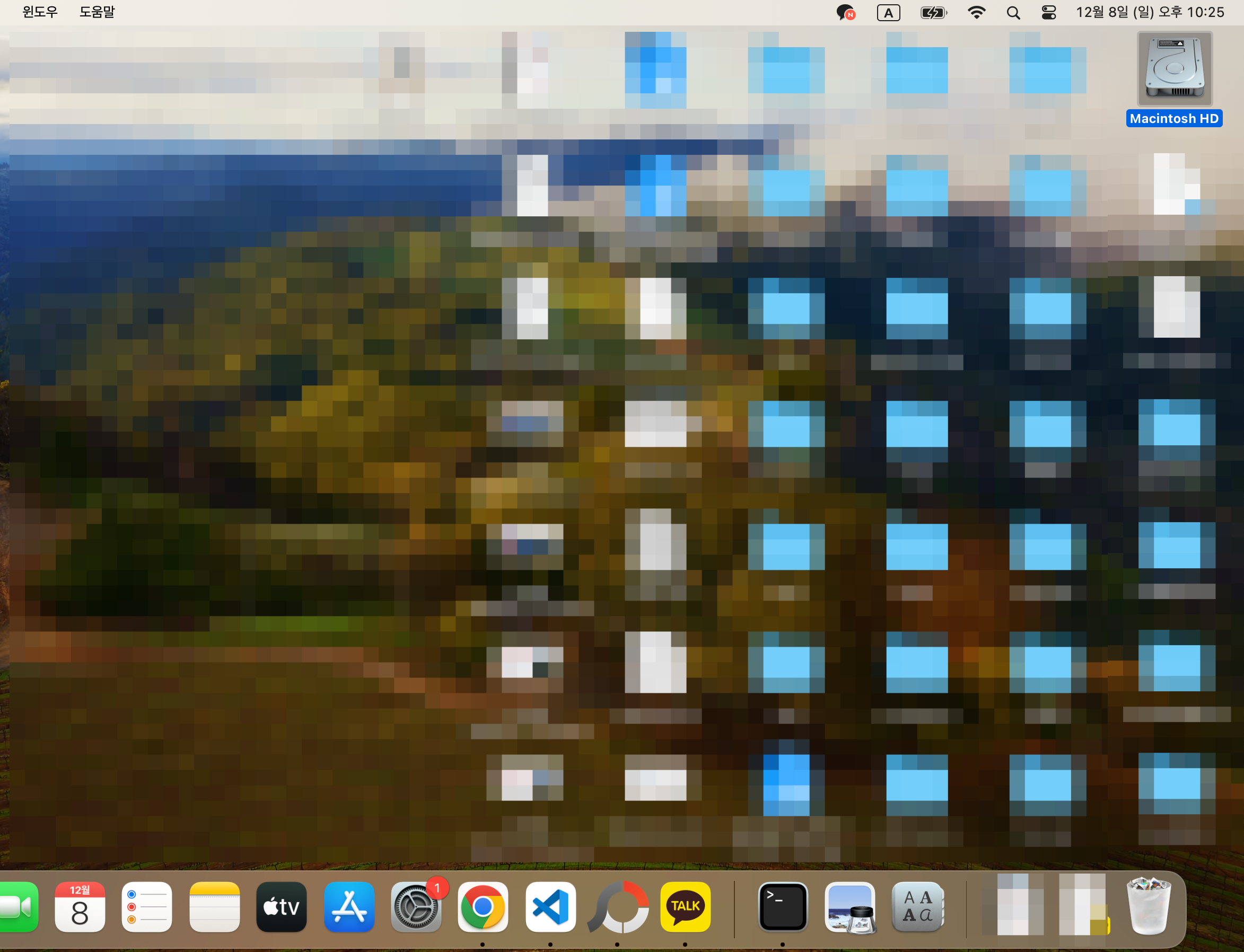 4. 하드디스크를 선택하면 바탕화면 우측 상단에 아래 그림과 같은 디그크 모양의 아이콘이 생깁니다.